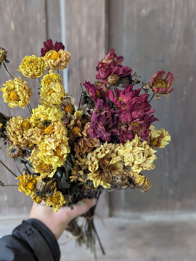 Nos bouquets de fleurs proviennent de notre production. Cultivées et choyées par nos petites mains dans notre ferme, toutes nos fleurs sont labellisées en AB pour vous assurer de les utiliser sans risques.