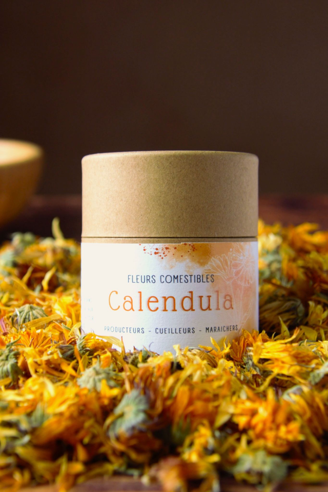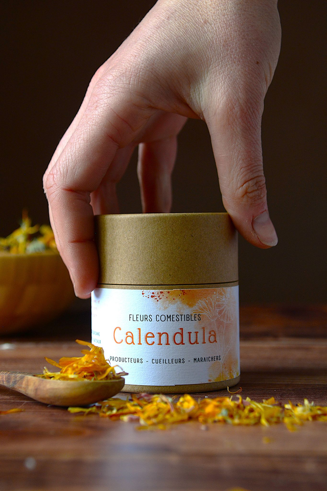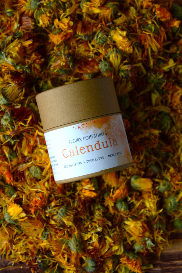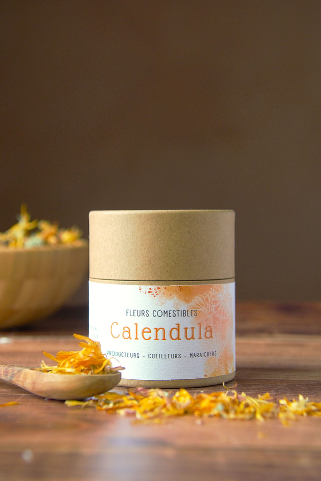 Ces jolies pétales de Calendula sont comestibles, avec un goût neutre elles vous permettront d'agrémenter de nombreux plats ou boissons.