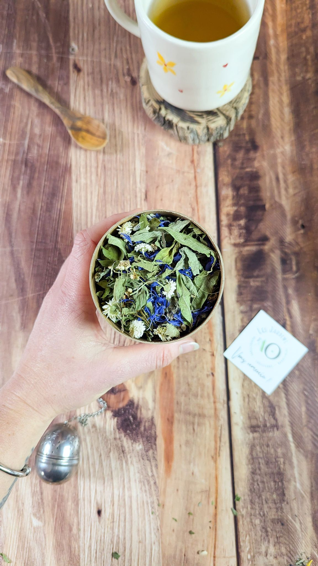 Profitez d'un moment de calme en savourant cette tisane toute douce. Florale, citronnée et légèrement épicée, elle vous emmènera vers plus de tranquillité, alors:
